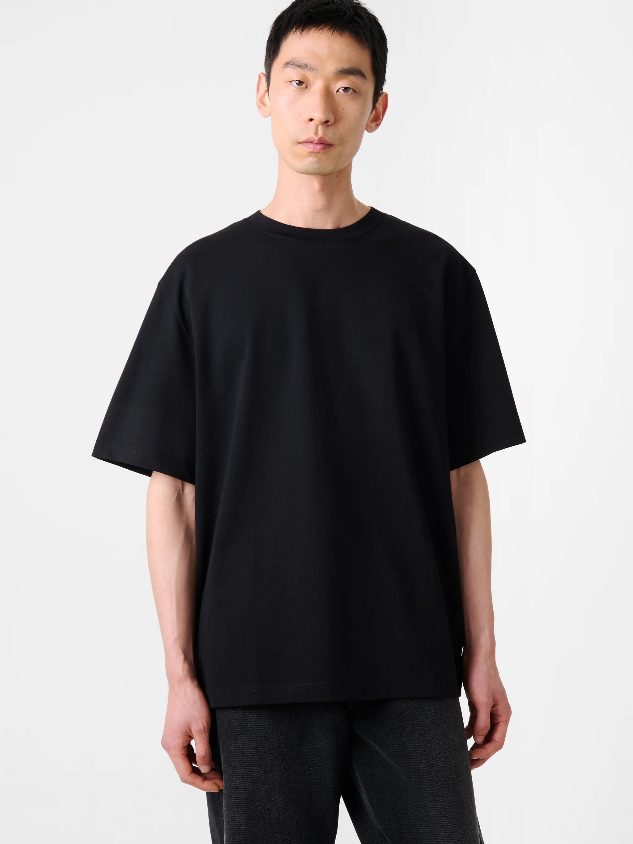 Lay’s boxy proportions are rendered in dense, weighty cotton jersey. The t-shirt is finished with a tonal branding detail at the back of the neck.