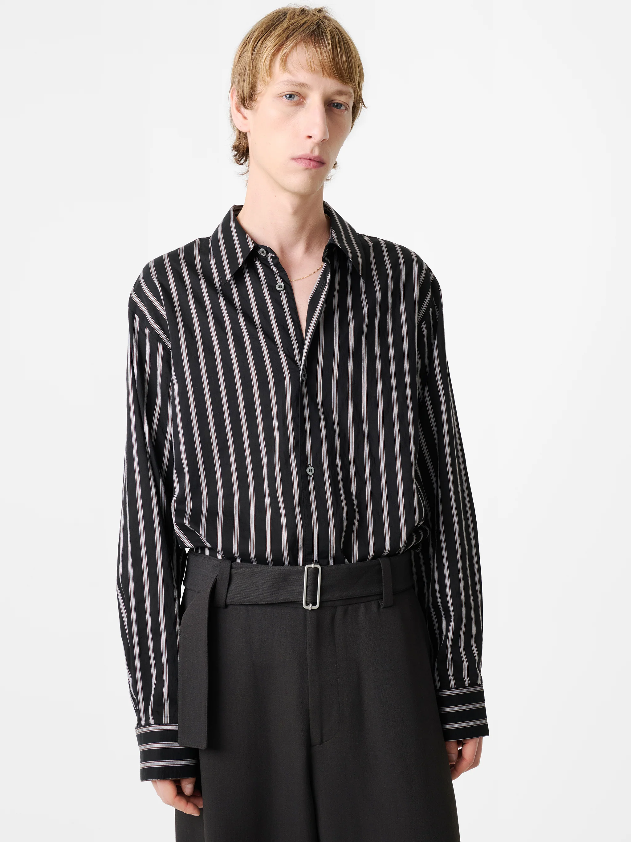 Cut from a crisp poplin with an antique stripe, this season's iteration of the View Shirt is a playful revision of classic menâs shirt styles: tailored, but without the stiffness of a formal shirt. It has a generous, slightly boxy fit which stops short of being truly oversized. Its collar and cuffs have a soft construction, giving them a casual feel.